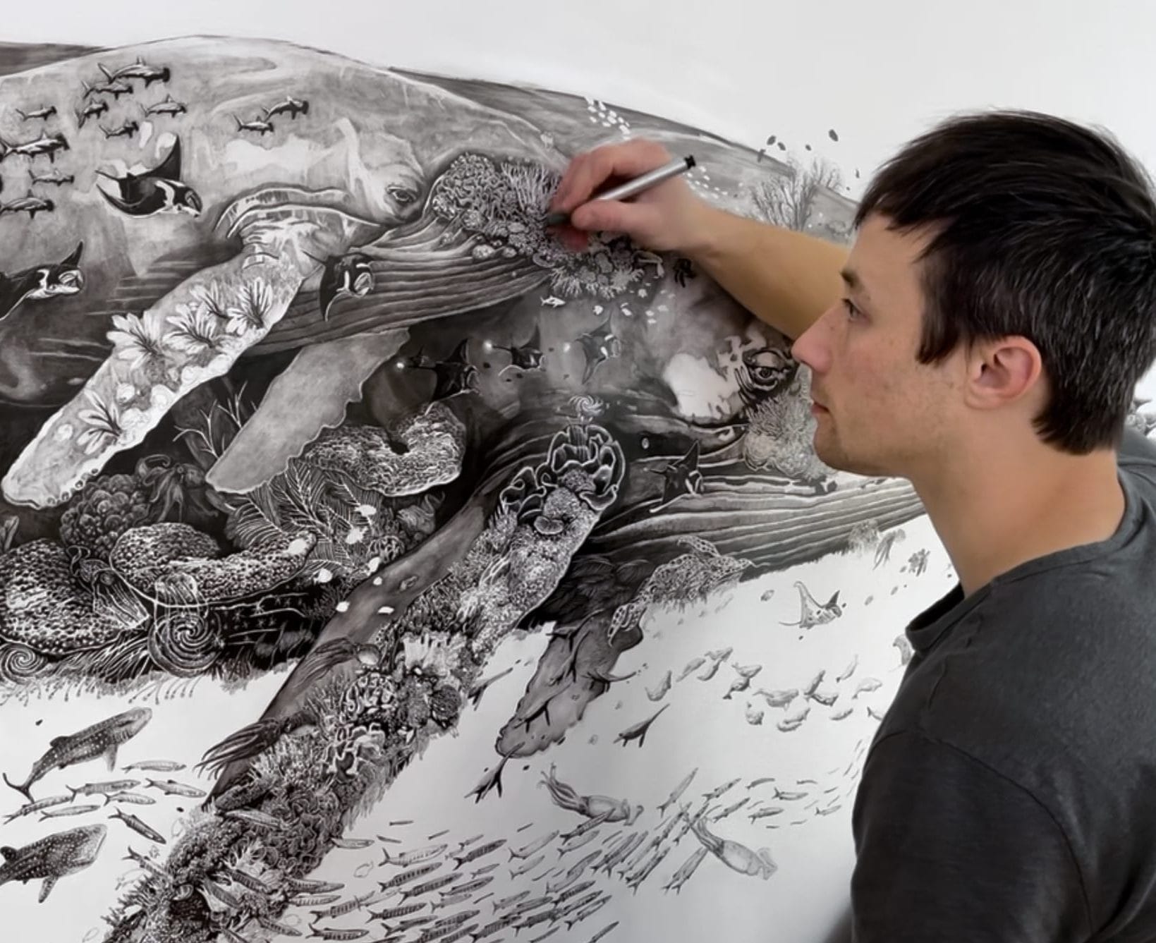 Ahead of Lustre, our nationally renowned craft and design market, we spoke to artist Olivier Leger, whose drawings and paintings celebrate the wonders of the oceans, whilst also drawing attention to the threats they face.