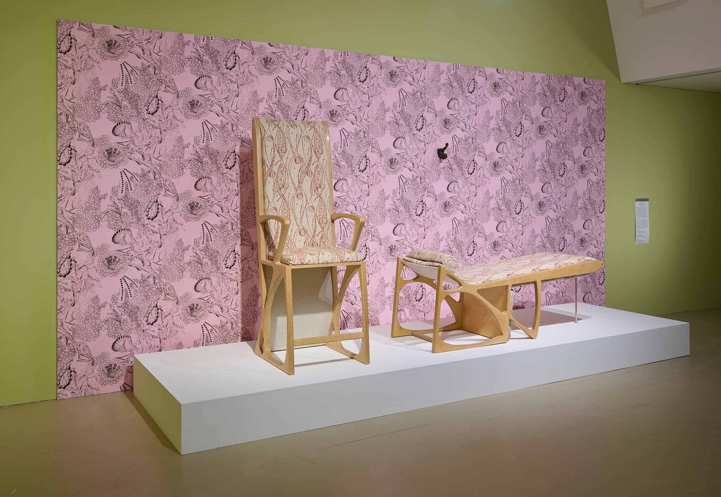 Dual is a modular seating arrangement that shifts between two chaise lounges and a pair of armchairs. Set against custom-designed wallpaper, the piece functions not only as furniture but as a performance of transformation, an homage to Jean Cocteau and a meditation on the fluid nature of identity. Its reversible, morphing design reflects Chaimowicz’s long-standing interest in ambiguity and duality, evoking his own position between cultures, languages, and genders.